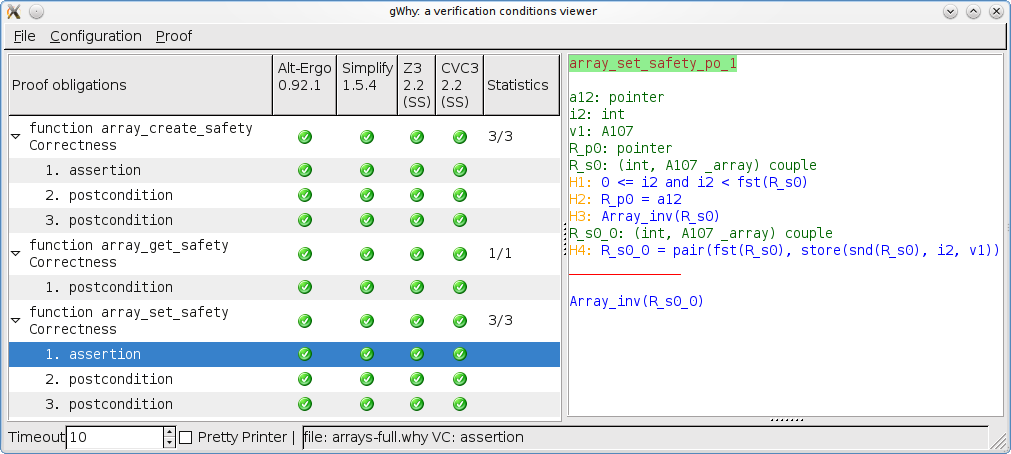 This is a source distribution. To compile Capucine, you need OCaml version 3.10.2 or later (Ubuntu / Debian package: ocaml). You also need Why 2.26 to compute verification conditions, and some automatic prover such as Alt-Ergo, Simplify, Z3 or CVC3. You may also use the Coq proof assistant.